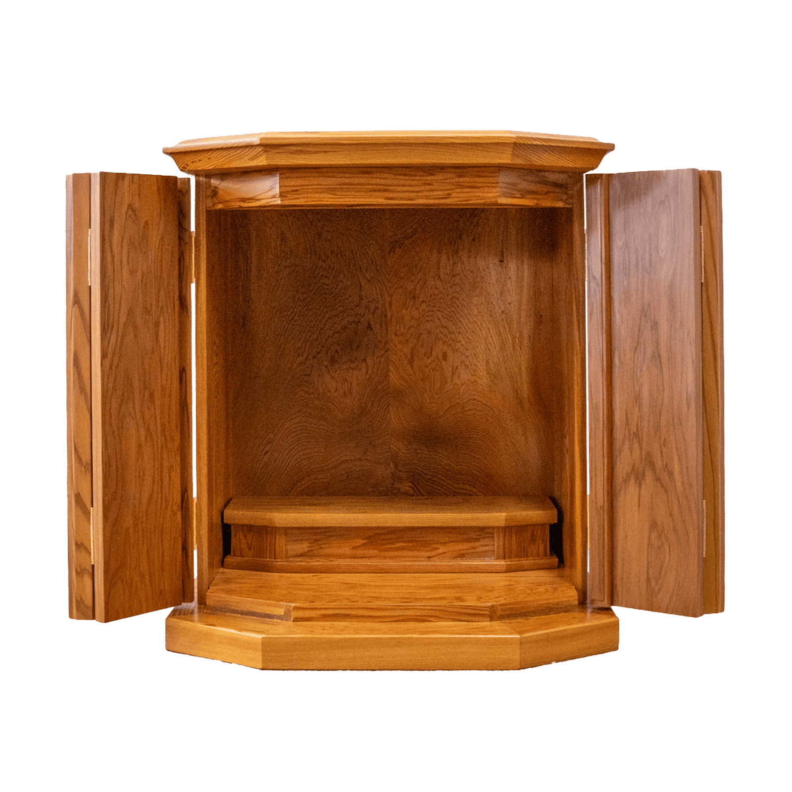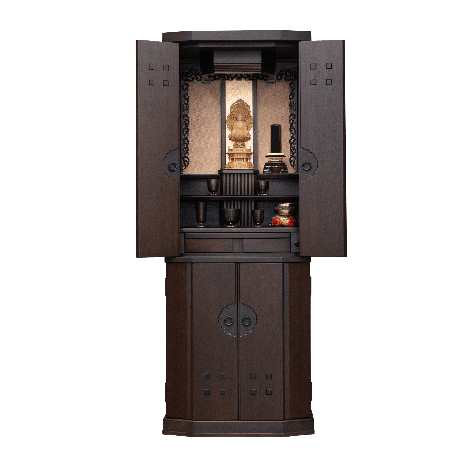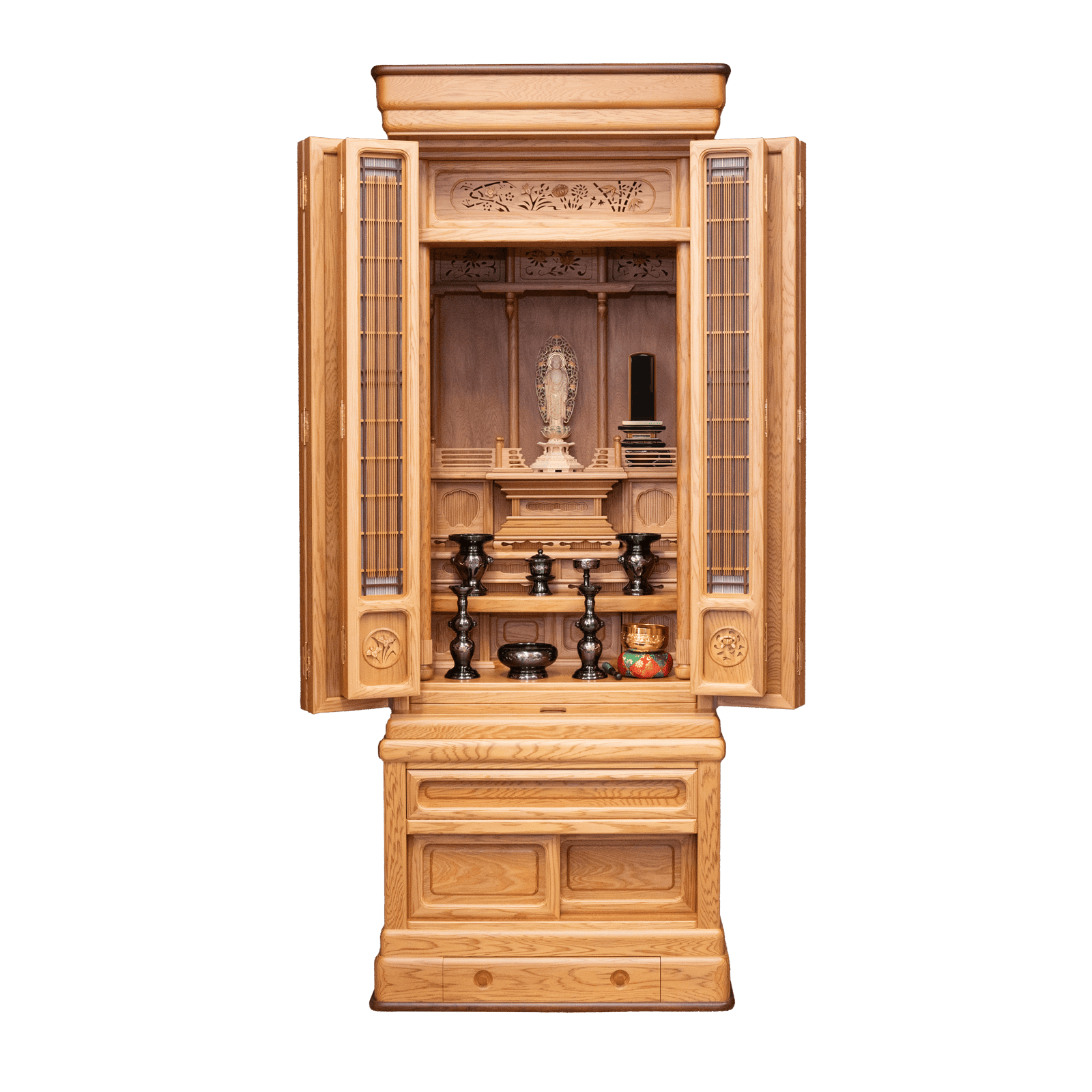 開放感あふれるデザインと貴重な屋久杉材にこだわった、扉のないオープン仏壇です。