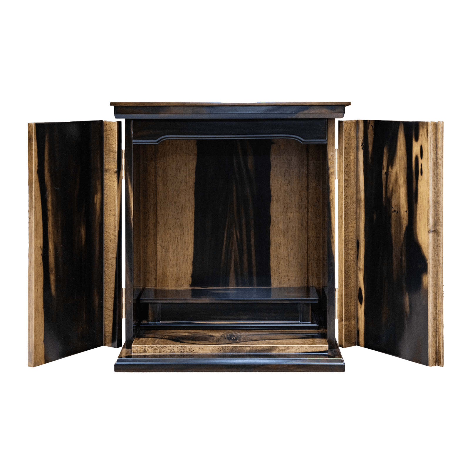 黒柿のなかでも特に木目が美しい板材を買い付け、仏壇職人に依頼したオリジナル仏壇。