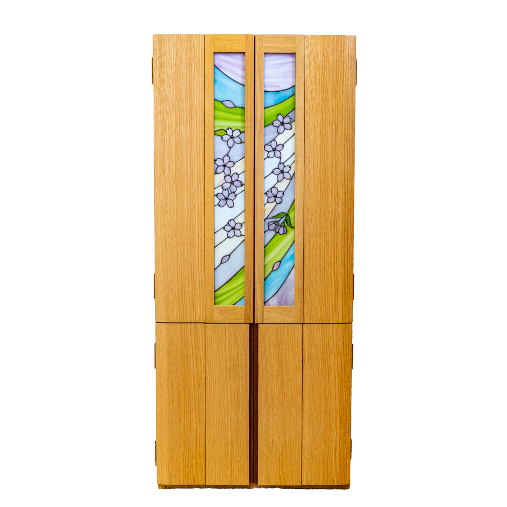 作家によるオリジナルステンドグラスをはめこんだ、床置きタイプの仏壇です。