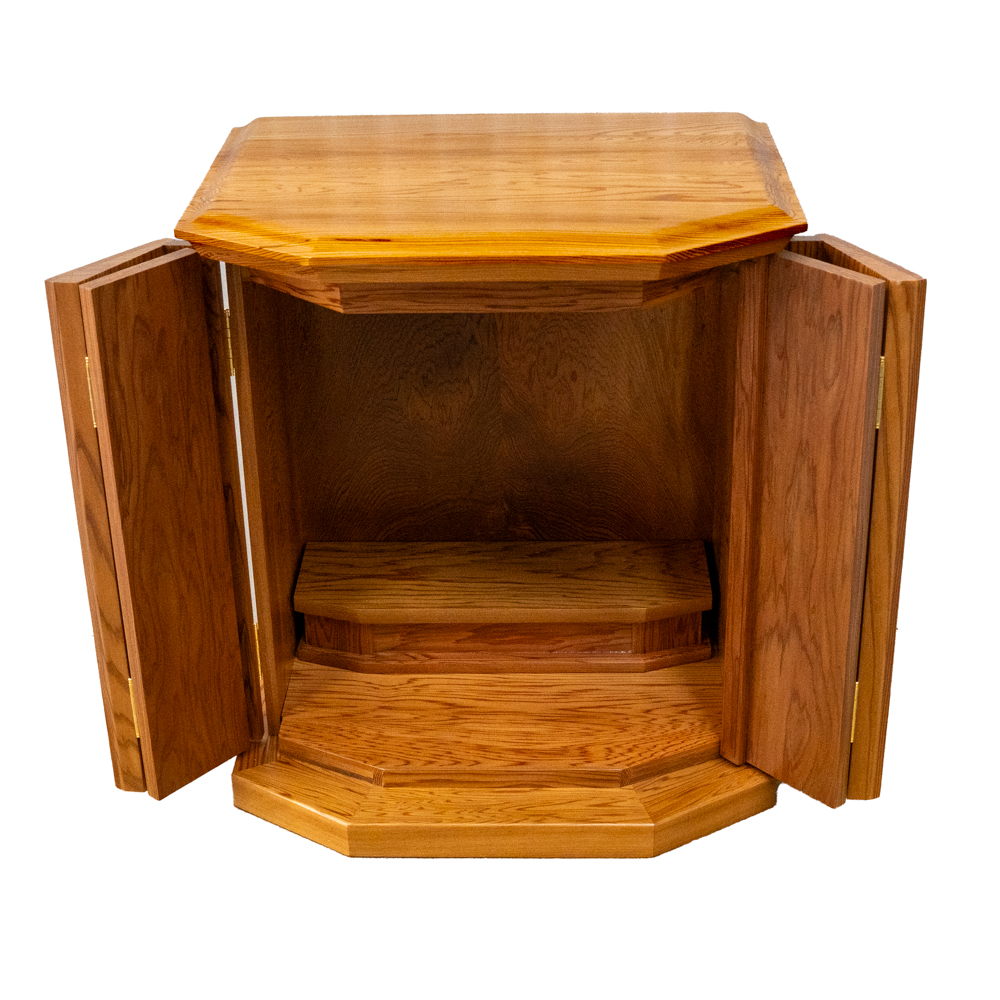 - 天然木を使用しているため、お線香・ローソクは仏壇の手前に出してご使用ください。